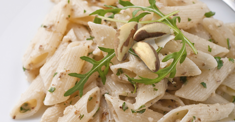 Active ingredients 150 g penne 100 ml fresh cream 150 ml veggie stock 2 tablespoons flour Herb salt and pepper 100 g brazil nuts, ground 20 g Parmesan, grated 30 g Brazil nuts, coarsely sliced Preparation: 1. Prepare pasta in seawater up until soft however still company. 2. Mix cream and veggie stock in a … Continue reading Penne with Brazil nut sauce